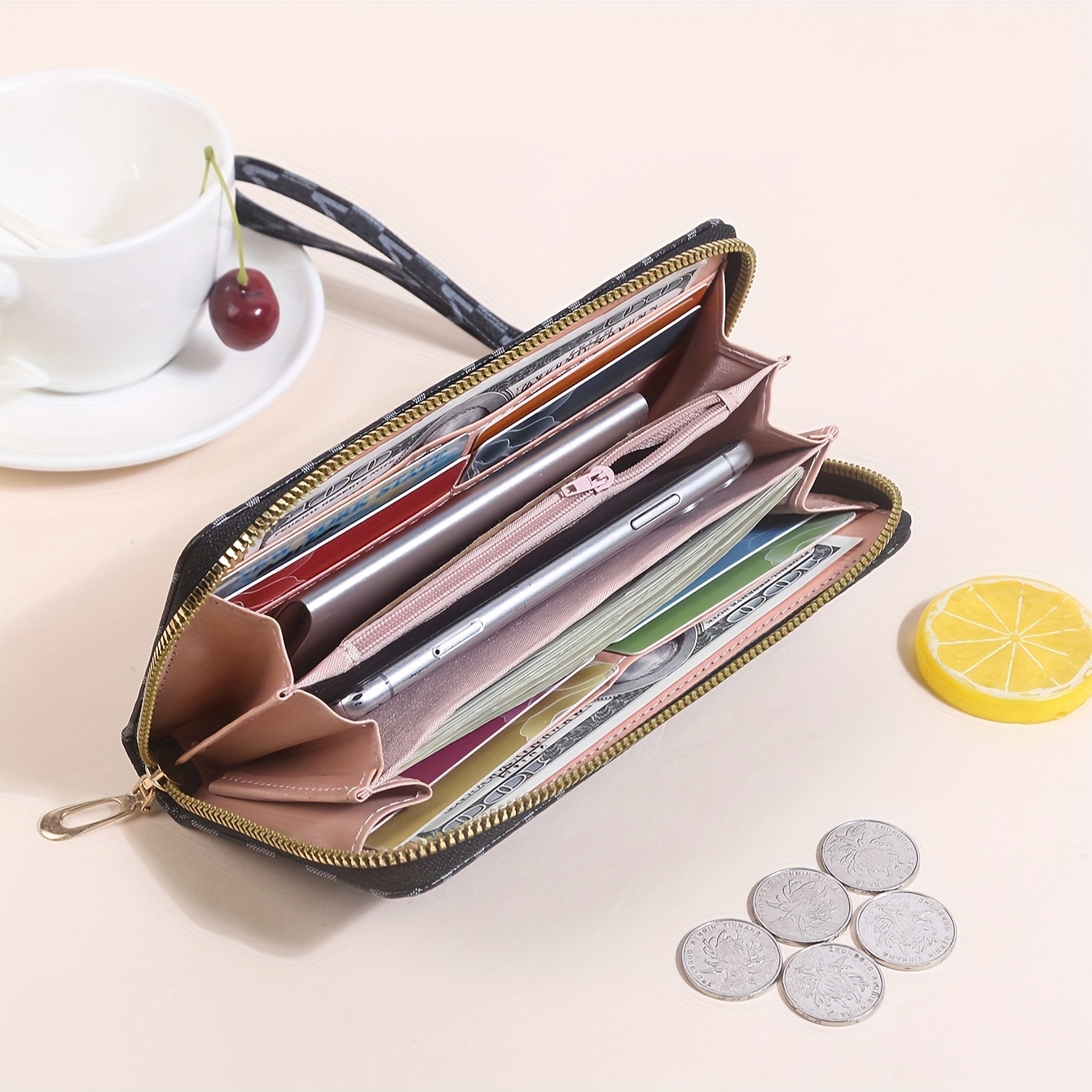 The included wristlet accessory enhances convenience, allowing for effortless carrying. Featuring random printing for a subtle touch of individuality, the design maintains a sophisticated aesthetic without edge paint detailing. For optimal care, the surface can be gently cleaned with a dry cloth. Manufactured in Guangdong, this wallet reflects dependable craftsmanship and timeless appeal.