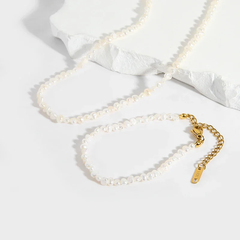 Designed as a thoughtful gift, this pearl necklace showcases a beaded chain and smooth freshwater pearls as the main stone, creating a graceful statement piece that complements a wide range of outfits with understated luxury.